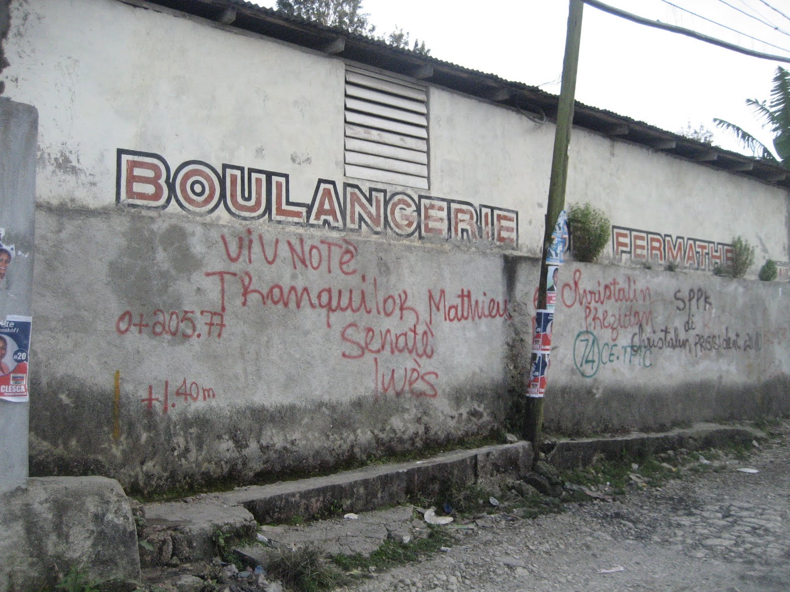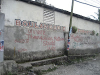 There is also a Pate stand (similar to a Jamaican Pattie or a very large Empanada) amongst the vendors to the right of the Baptist Mission sign. It is a fried dough stuffed with chicken and cabbage, generally sold around lunch time.
