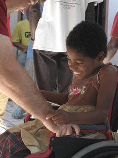 I stood with the kids for their morning sermon. Seeking affection, Josephine had grabbed my right hand as I was passing her. As I settled into the hallway, with one child at one hand, another little hand grabbed for my other. Fritz, who has cerebral palsy and cannot even feed himself, focused enough to reach out and hold my hand. I was touched!